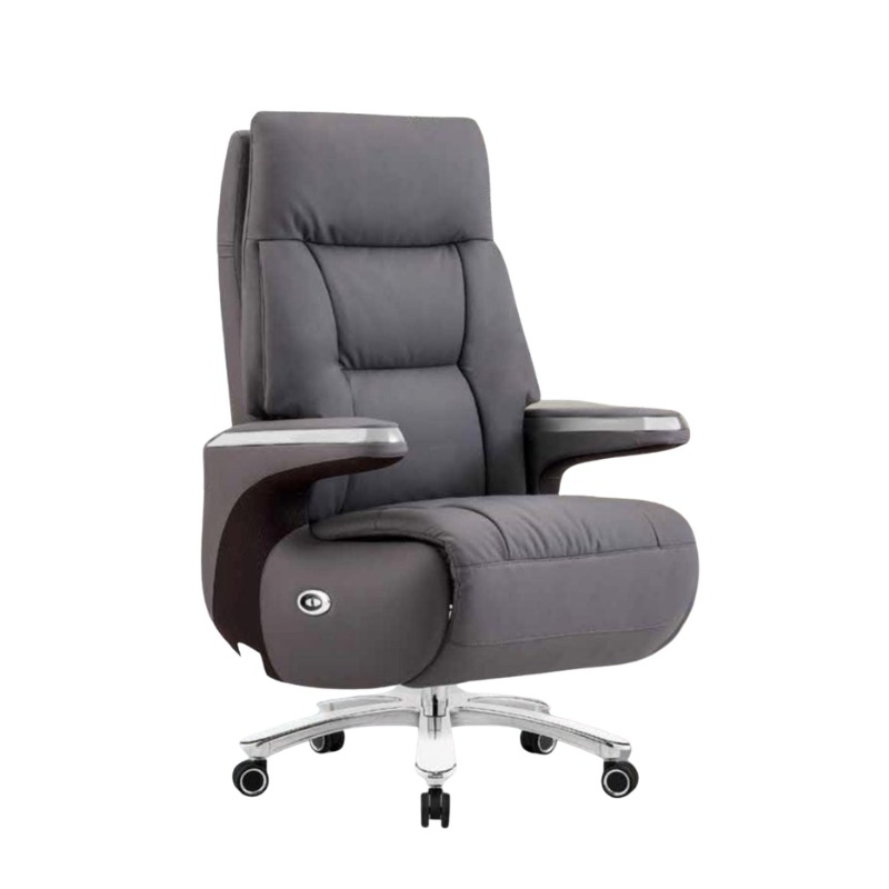The electric reclining function allows smooth adjustment from 90° to 160°, with a synchronized footrest for full-body relaxation. Its 360° swivel, ergonomic armrests, Class 4 gas lift, and sturdy aluminum base ensure flexibility, durability, and comfort throughout the workday.